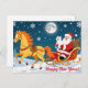 Postal Christmas, New Year, Red Horse, Santa & White Cat
