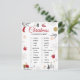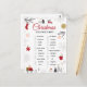 Festive Christmas scavenger hunt checklist artwork with a clean white background and charming holiday illustrations. Designed with elegant red cursive typography, surrounded by cozy winter elements like evergreen branches, snowflakes, houses, trees, a snowman, and warm holiday details. The balanced layout creates a joyful seasonal atmosphere perfect for family-friendly celebrations. All text and images are fully editable, allowing easy changes to match any style or preference.