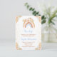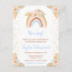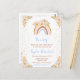 Esta linda y caprichosa invitación para chupinada de bebé cuenta con un arcoíris boho, confeti y arreglos florales con hierba de pampas en tonos neutros beige, azul y marrón. El texto combina fuentes manuscritas y sans serif para una apariencia elegante y moderna. Esto es perfecto para una chupinada de bebé en primavera o verano.