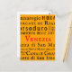 Lugares de Venecia en tipografía vintage, texto negro sobre naranja con acento rojo. ¡Comparte la experiencia venezolana con cualquiera!