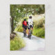 Dos ciclistas de carrera disfrutando de los carriles rurales de Gales. Acuarela.