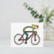 El diseño de ciclismo muestra a un ciclista de garrote genial que monta una bicicleta de carreras a toda velocidad. Gráfica de ciclismo dibujada a mano para diversión, fitness y competencia.