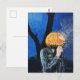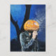 Una tarjeta postal espeluznante de Halloween con la obra de arte pastel, “The Headless Biker”. Esta ilustración presenta un fantasma con cabeza de calabaza que lleva una chaqueta de cuero fumando un cigarrillo en una noche oscura y fría de octubre. Obra de arte original: Pasteles sobre papel. Derechos de autor Dominic A. White. Reservados todos los derechos.