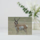 Tarjeta postal de ciervo berrendo macho cuernos torcidos.