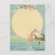Niños de ilustracion y bebés de época con una cigüeña con una bebé recién nacida en una manta rosa.