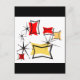 Regresa a los años cincuenta con este diseño rojo, negro y amarillo dorado suave. Las estrellas y otras formas le dan ese ambiente retro.