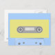 Imagen de cinta de cassette retro verde pastel y azul sobre productos y favores fiestas.