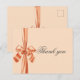 Preciosa cinta de raso falsa de color melocotón naranja pastel de arriba a abajo en esta preciosa tarjeta postal de agradecimiento de boda económica. Sencillez con un toque de elegancia en su máxima expresión. Simplemente encantadora. Perfecta para bodas de cualquier temporada. Escribe tu mensaje personal en el reverso.