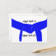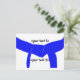 Personalizar de la tarjeta postal del cinturón azul claro de artes marciales con tu nombre, nombre del equipo o escuela, arte marcial específico y mensaje. Es una gran carta de felicitaciones o una invitación para la fiesta de cumpleaños. Adecuado para artistas de karate, taekwondo, kung fu o judo marcial. Esta tarjeta de artes marciales personalizados presenta una fotografía digitalmente realzada de una azul de artes marciales.