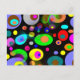 Un diseño retro divertido y muy colorido con un patrón de burbuja de círculos de color arcoiris y formas redondeadas, similar a los ojos.
