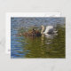 Cisne con Coot Eurasiática sentada en su nido. Lago Roath Park, Cardiff, Gales.