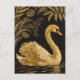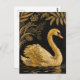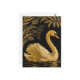 Una llamativa pintura con un cisne dorado de alta textura deslizándose sobre un cuerpo de agua oscuro y reflexivo. Las plumas del cisne son representadas con gruesos trazos de oro y pintura blanquecina, que le dan una calidad luminosa, casi escultórica. Está rodeado por un fondo denso, de color negro inky, del cual emergen follaje estilizado y abstracto y vides en oro brillante. La superficie del agua es oscura y brillante, con ondas sutiles alrededor del cisne. El efecto general es un contraste dramático y un simbolismo rico que combina elementos naturales con un estilo lujoso y fantástico.