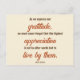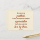 Front: Una cita de Acción de Gracias de John F. Kennedy está al frente. La cita dice: Mientras expresamos nuestra gratitud, nunca debemos olvidar que el mayor aprecio no es pronunciar palabras sino vivir de ellas. Estas palabras de sabiduría del presidente Kennedy provienen de su proclamación presidencial de Acción de Gracias de 1963. Back: Feliz Día de Acción de Gracias está en un hermoso tipo de letra de guión. Puede agregar su nombre en texto marrón bajo el guión.