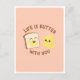 Cita divertida de amistad y amor por comida de pan y mantequilla Kawaii. Tarjeta postal con la leyenda 'La vida es mejor con mantequilla contigo' es un saludo perfecto, lindo, afectuoso y ligero para tus seres queridos. Pan y mantequilla sonrientes y kawaii con diferentes fondos de colores pastel calentarán el corazón de tus amigos, familiares, parientes, novias, novios o cónyuges.
