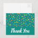 Tema acuarela linda con puntos polka y cita de agradecimiento. Diseño simple moderno de puntos o manchas de acuarela de colores de arcoíris. Diseño contemporáneo limpio. Caprichoso, boho y divertido, Brillante y colorido. Sobre fondo azul turquesa para un aspecto limpio y lindo.