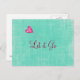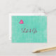 Tarjeta postal de Cita de Dejar Ir con fondo verde estilo desgastado y globo aerostático rosa. Frase inspiradora y motivadora para cualquiera que necesite simplemente dejar ir.