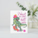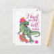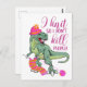 En esta imagen humorística se incluye una graciosa cita de punto: "Lo hago para no matar a la gente". El dinosaurio (¡un Tyrannosaurus Rex!) está tejiendo una bufanda y usando un lindo gorra. Una tarjeta postal dino-mite para enviarla a tus amigos de la camilla.