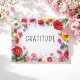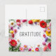 Tarjeta postal de cita inspiradora de gratitud y flores coloridas, perfecta para la oficina en casa