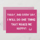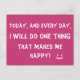 ¿Estás buscando una tarjeta postal de motivación para alguien a quien amas? ¿Qué tal esta bonita postal inspiradora rosa y blanca que dice 'Hoy y cada día haré una cosa que me haga feliz! escrita en geniales letras blancas al lado de un lindo diseño de caras sonrientes?