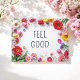 Postal inspiradora de cotización y flores coloridas con las palabras FEEL BUEN, perfecto para el Ministerio del Interior o como regalo de aliento