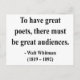 "Para tener grandes poetas, debe haber una gran audiencia" - Walt Whitman.