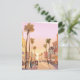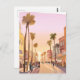 Ciudad costera del atardecer en California | Acuarela costera de árbol de palmas