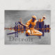 Un ilustracion de la foto usando imágenes icónicas y texturas para representar el grunge y la belleza de la ciudad de Detroit.