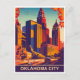 Postal de la ciudad de Oklahoma en colores naranjas y vibrantes. Postal de viaje.