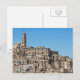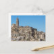 Postal de la antigua arquitectura de los Sassi di Matera con casas cortadas en la montaña como cuevas en un día despejado con un cielo azul en la región de Basilicata en el sur de Italia.