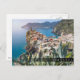 Postal de las coloridas casas del pequeño pueblo pesquero Vernazza, uno de los pueblos de Cinque Terre, construido sobre una roca en la costa mediterránea de Liguria, cerca de La Spezia en Italia, con un bar negro que se desvanece y el texto Vernazza.