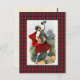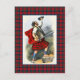 Postcard con un ilustracion de acuarela vintage mejorado y limpiado digitalmente por el artista escocés Robert Ronald McIan, de fecha 1845. Enmarcado con el tartán de Clan MacDuff, un patrón de yeso tradicional en rojo, azul, verde y negro. Imagen digital escocesa creada por Susan Wallace de Plaidwerx usando el recuento de hilos proporcionado por el Registro Escocés de Tartans.
