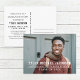 Anuncie su graduación con estilo con esta moderna postal de invitación de graduación e invitación a la fiesta. El diseño presenta una foto de la graduación con un texto de superposición de rayas blancas que se puede personalizar con el nombre de los graduados, la escuela y el año de clase. Incluye una invitación a una fiesta de graduación en la parte trasera.
