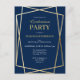 Celebra tu graduación de la Clase de 2025 con la familia y amigos con esta elegante invitación a la fiesta de graduación geométrica en oro y azul. Este diseño presenta un estilo formal en azul y oro con acentos geométricos dorados.