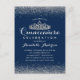 Moderna y Elegante Invitación de Cumpleaños de Quinceañera Azul Real con Brillo de Pizarra de Plata