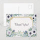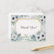 This beautifully balanced thank you card features a soft watercolor arrangement of white anemones, delicate thistles, and cool-toned greenery surrounding a refined gold geometric frame. The floral elements are thoughtfully placed in the corners, creating a natural yet structured composition that draws attention to the centered message. The gentle palette of sage, soft blue, and muted neutrals pairs effortlessly with the clean gold lines, resulting in a timeless and versatile design perfect for weddings, bridal showers, or elegant everyday correspondence.