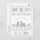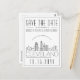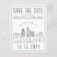 Una tarjeta postal única que salva la fecha para un matrimonio que tiene lugar en la hermosa ciudad de Cleveland, Ohio. Esta invitación presenta un ilustracion estilizado del paisaje único de la ciudad con su nombre debajo. A esto le sigue la información del día de la boda en un estilo de línea abierta que coincide. En el reverso de la publicación está la información de dirección. Todos los elementos individuales de la tarjeta de invitación están desbloqueados, por lo que puede cambiar cualquier detalle necesario, como tamaños de letra, estilos y más, utilizando la función de personalización. Puede agregar una foto al reverso y agregarle un filtro en blanco y negro. ¡Diviértete siendo creativo y hazlo tuyo!