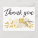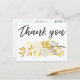 Diseño floral de oro moderno y negro Gracias postal con letra con letras a mano. Edite esto con un mensaje personal.