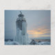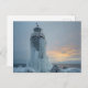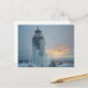 Postal coastal lighthouse in winter storm