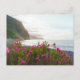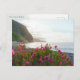 This scenic postcard captures the breathtaking coastline of São Vicente, Madeira, as the soft glow of sunset hits the dramatic cliffs. Vibrant pink wildflowers in the foreground frame a tranquil view of the Atlantic Ocean and the rugged northern shore. It is an ideal keepsake for lovers of botanical beauty, coastal landscapes, and the unique charm of the Madeira island.