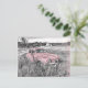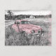 Coche del vintage con acentos rosados--foto blanco y negro hermosa con el coche rosado del vintage y la capa rosada del bokeh.