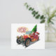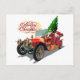 Tarjeta de Navidades de felicitación con auto vintage y Santa Claus