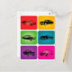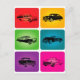 Un ilustracion de coches negros de época con fondo de colores
