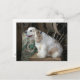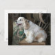 Un bonito blanco con manchas marrones Cocker Spaniel fotografiado en un ambiente rústico. Para todos los amantes de la raza esto hará un regalo maravilloso para cualquier ocasión.