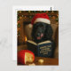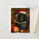 Humorous Christmas postcard featuring a cute black cocker spaniel reading 'The Cheese Tax at Home Regulations 2025' whilst trying to resist the urge to eat the cheese that someone's left on the table right in front of its nose!