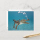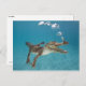 Tarjeta animal que muestra un cocodrilo de buceo mientras las burbujas de agua se extienden.