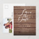 Esta tarjeta de guardar la fecha rústica presenta un elegante texto de guardar la fecha sobre tus detalles en tipografía elegante sobre un fondo de paneles de madera rústica. El reverso tiene detalles adicionales para guardar la fecha, incluyendo tu foto especial y código QR del sitio web de la boda, con tu dirección de devolución y espacio para la dirección de tu destinatario. Diseñado por Thisisnotme©