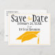 Envía esta tarjeta postal de anuncio de plantilla "Guardar la fecha" naranja y negra con código QR para la reunión de tu clase. Personaliza el texto en los campos de la plantilla para el frente y la parte posterior, agrega el enlace apropiado para tu código QR o edita usando la herramienta de diseño para seleccionar un estilo de fuente, tamaño y color que prefieras.