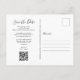 Esta tarjeta de guardar la fecha rústica cuenta con hermosas luces de cuerda y un elegante guión guardar la fecha encima de tus detalles establecidos en tipografía elegante sobre un fondo de paneles de madera azul rústicos. La parte posterior cuenta con detalles adicionales para guardar la fecha, incluyendo el código QR de tu sitio web de boda, con tu dirección de devolución y espacio para la dirección de tu destinatario. Diseñado por Thisisnotme©