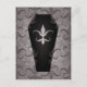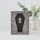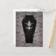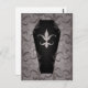Una postal con un elegante ataúd gótico negro con un patrón de fondo de damasco grueso sobre ella. Escribe tu saludo de Halloween en la espalda.