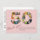 Una forma maravillosa de decir gracias a aquellos que asistieron a una celebración de cumpleaños número 50. Una tarjeta de agradecimiento única de diseño clásico en rosa suave. Utilice nuestra plantilla para crear su propio collage de fotos personalizado. Este accesorio de fiesta de cumpleaños amoroso para esa fiesta maravillosa tiene un formato elegante y chic con una tipografía hermosa. El diseño se centra en sus 14 fotos en el "50". Las fotos utilizadas son cuadradas (estilo instagram) con todas las imágenes bastante centradas. Puede usar imágenes en formato horizontal y vertical que se recortarán automáticamente. Cambie sus imágenes a diferentes posiciones y diviértase creando su diseño. Pase por nuestra tienda y explore la gama de regalos de fotos para cumpleaños número 50.